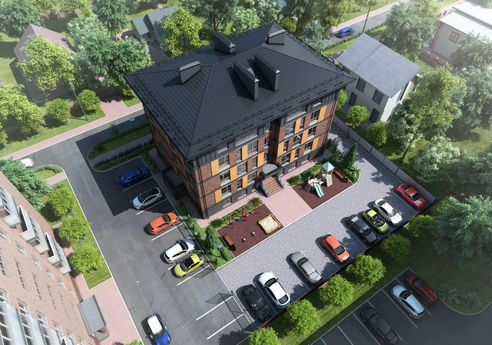 Дитячі ігрові зони Безпечні гральні майданчики для найменших мешканців комплексу.