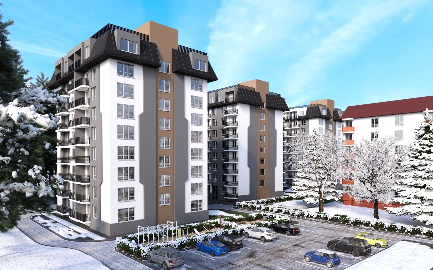 • Архітектурне досконалість – Сучасний дизайн будівель, що підкреслює статус та стиль мешканців.