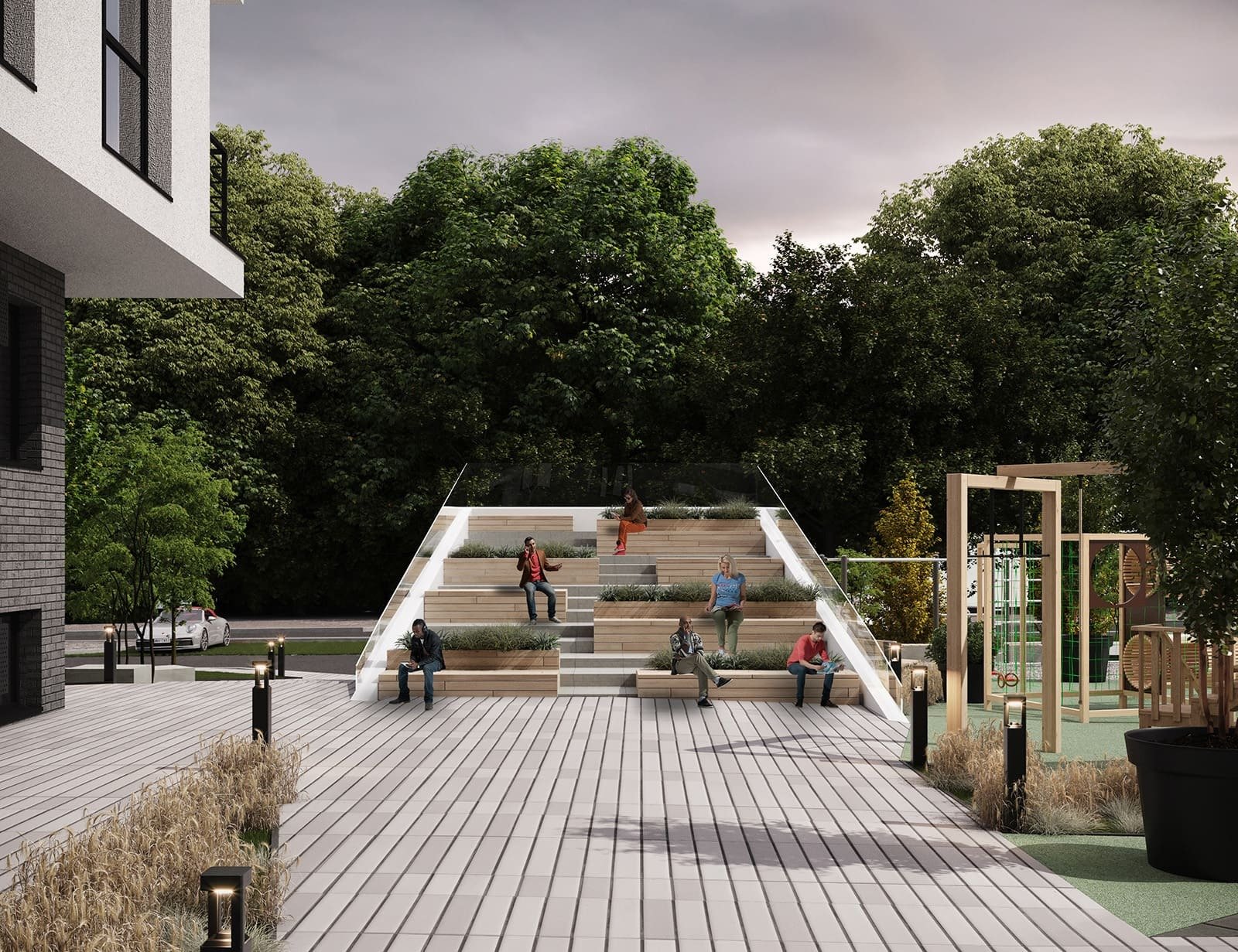 Будівлі комплексу виконані у сучасному дизайні із використанням інноваційних технологій та екологічних матеріалів. Переваги життя тут очевидні: