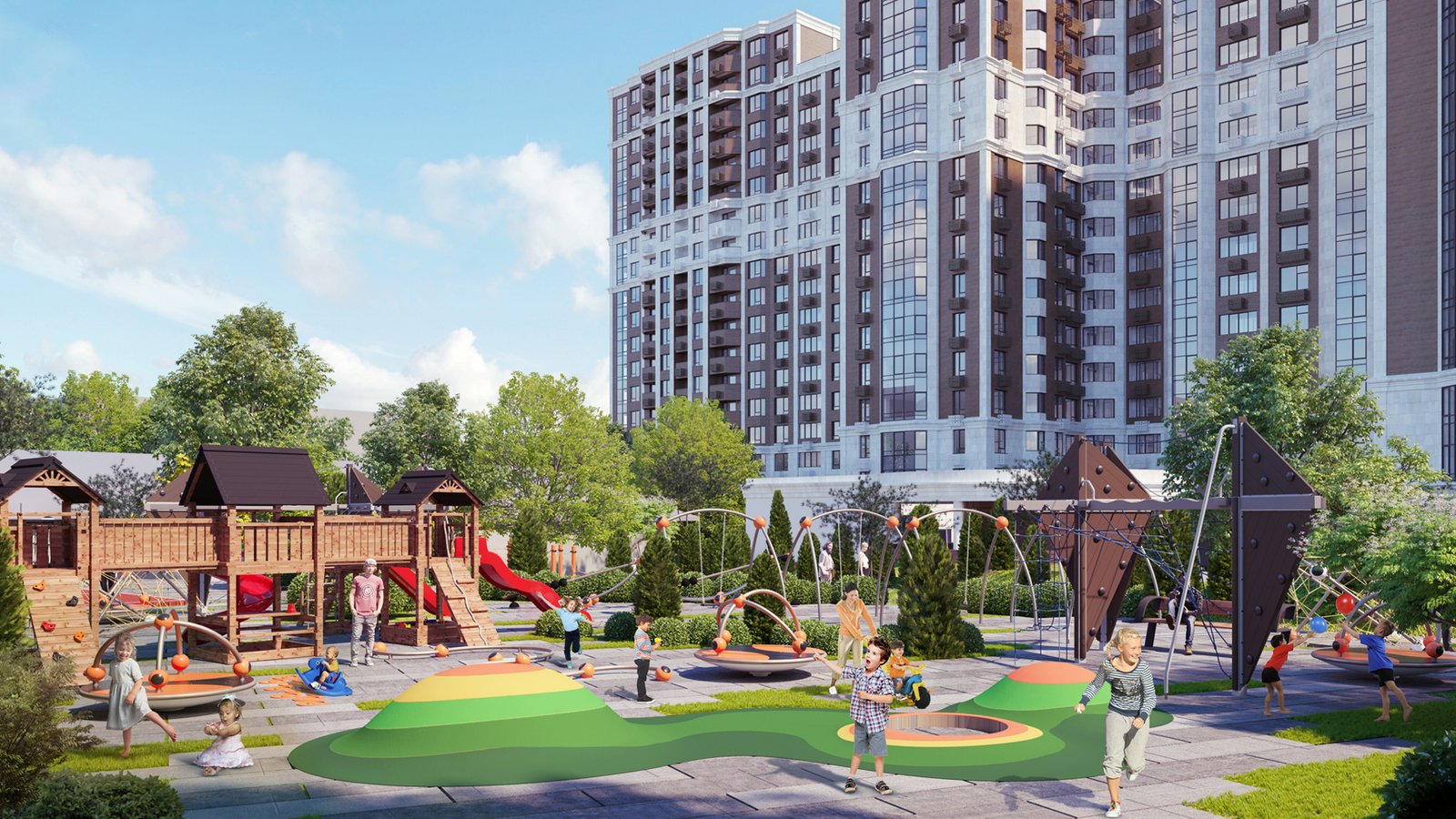 Насолоджуйтесь відпочинком у великих зелених зонах та парках, які оточують цей житловий район. Ви легко знайдете місце для прогулянок, активного відпочинку чи пікніка з родиною.