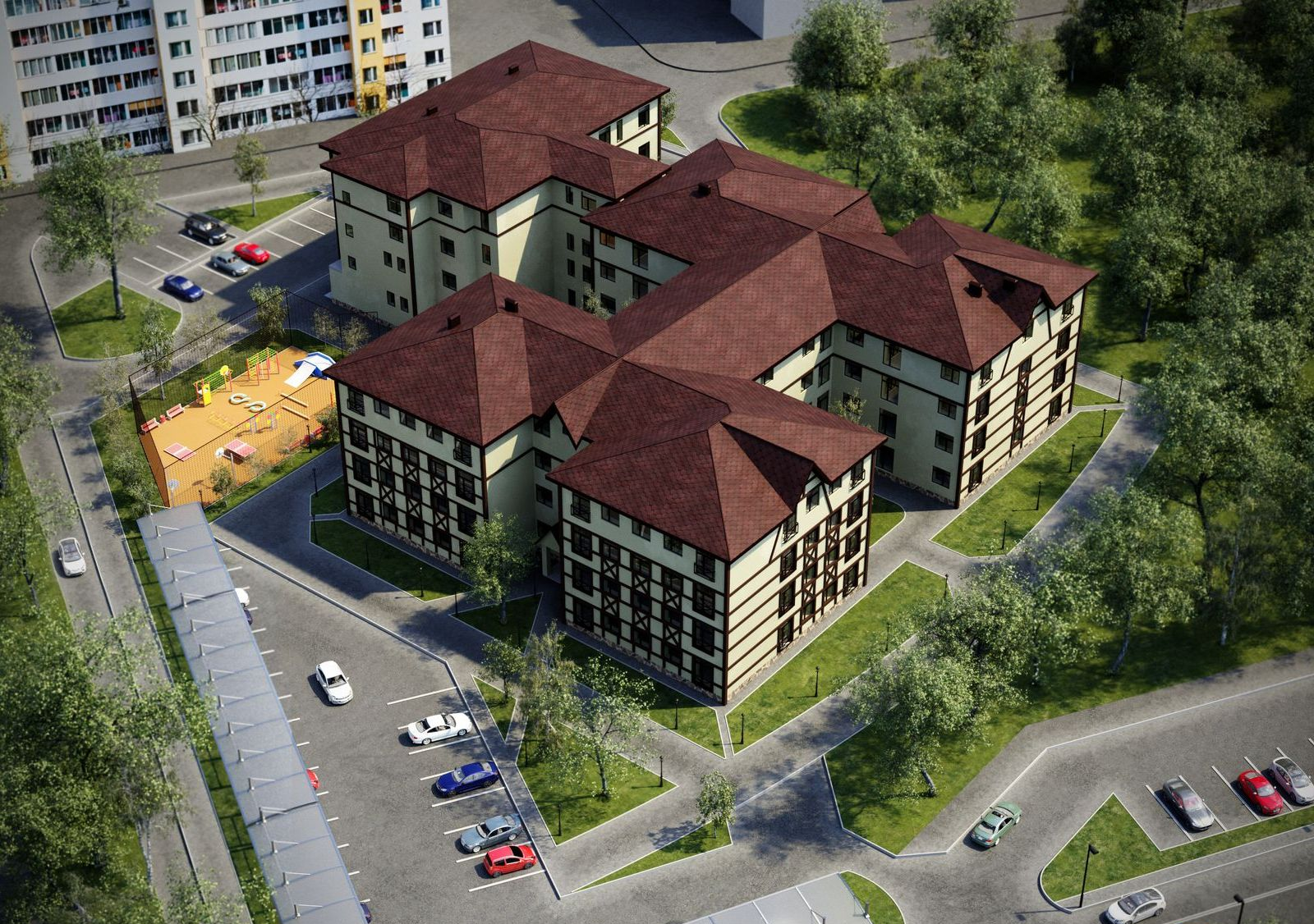 На території комплексу передбачені всі необхідні інфраструктурні об’єкти, які забезпечать комфорт мешканцям: